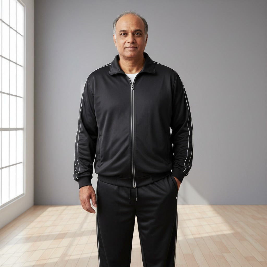 Crafted from premium Lycra-Spandex, this tracksuit is lightweight, flexible, and durable, designed to move with you during workouts or casual wear. The 4-way stretch fabric ensures maximum mobility and comfort, while its breathable and quick-dry properties keep you fresh all day. Wrinkle-resistant and tailored for a sleek, modern fit, it also features an adjustable waistband and closures for a secure, customizable fit. Perfect for training, jogging, travel, or lounging, this tracksuit combines performance and style effortlessly.